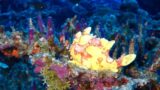 深いところに生息する緑色のナンヨウキサンゴ、キンギョハナダイとのコントラストがきれいですね。