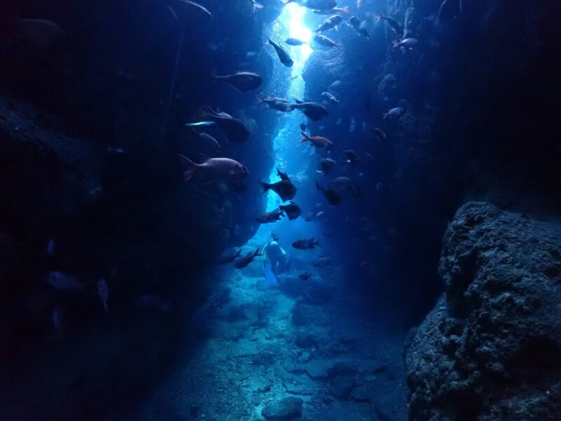 今日はりょうちゃんとふくちゃん、そしてみーちゃんの3人で水納島や瀬底島、沖縄本島にファンダイビングをして来ました!!本日も綺麗な水納島からスタートで、スカシテンジクダイやスズメダイをのんびりと、洞窟や桟橋の中を泳いで楽しんで来ました!!