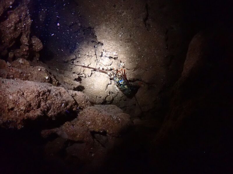ミナミハコフグが洞窟前でお出迎え!!そして伊勢海老も確認!!!