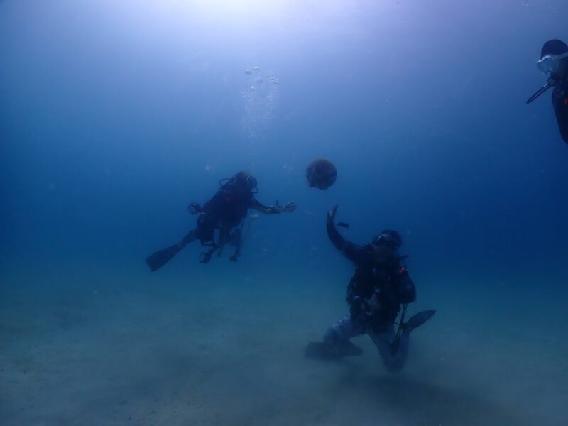 帰りに丸いものが落ちてましたのでみんなで水中バレー大会!!