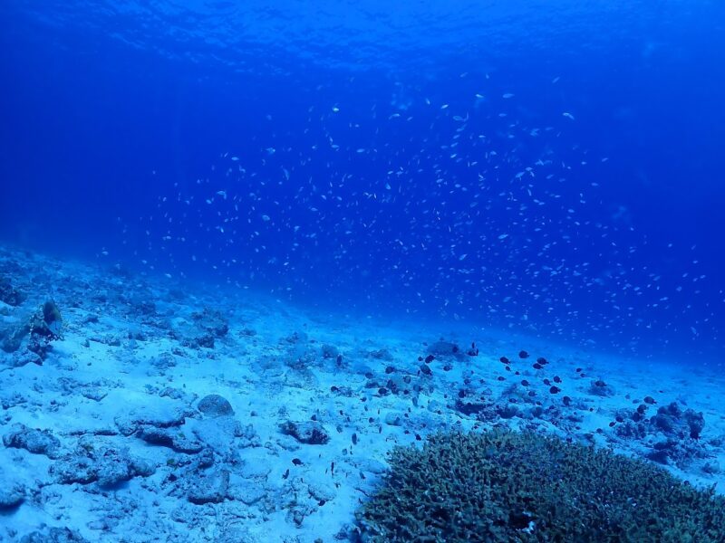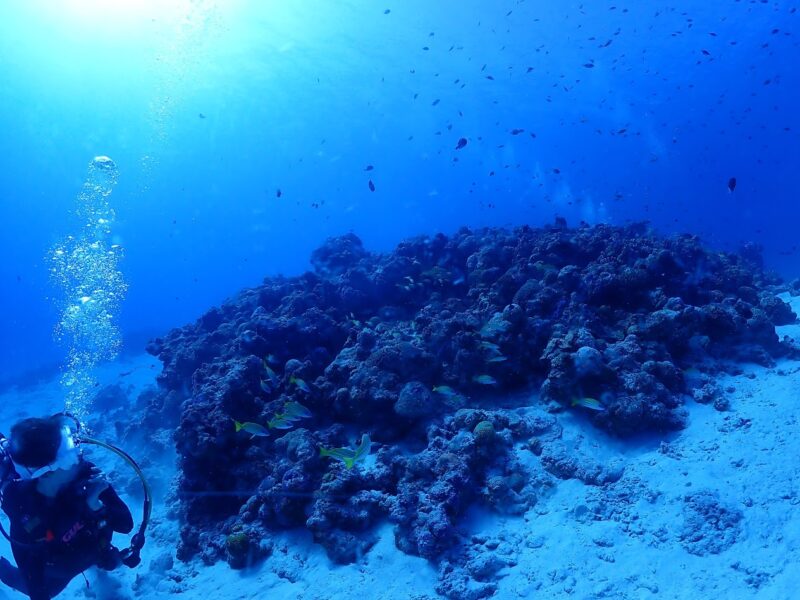 2本目:水納島(ポイント名) 風速:東南東5m 波:0.2m 透明度30m 水温:29℃ IN:10 :40 OUT:11:20 TIME:40分 MAX:18m 平均:11m