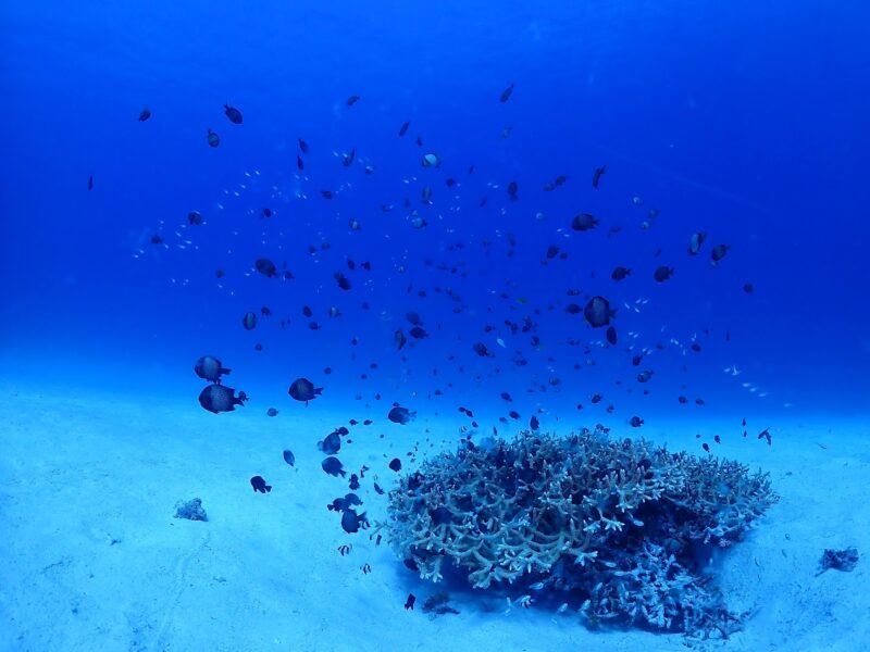 1本目:水納島(ポイント名) 風速:東南東5m 波:0.2m 透明度30m 水温:29℃ 流れ:下げ2 IN:9:30 OUT:10 :10 TIME:40分 MAX:17m 平均:10m