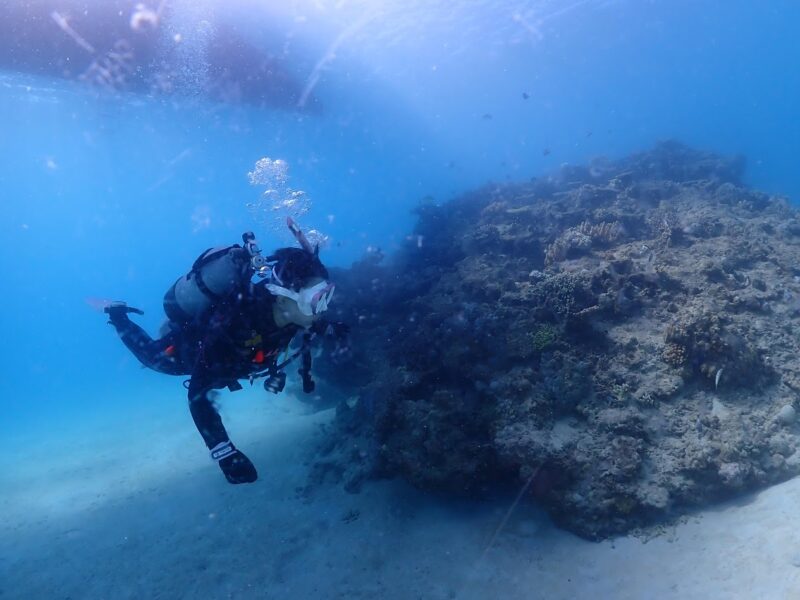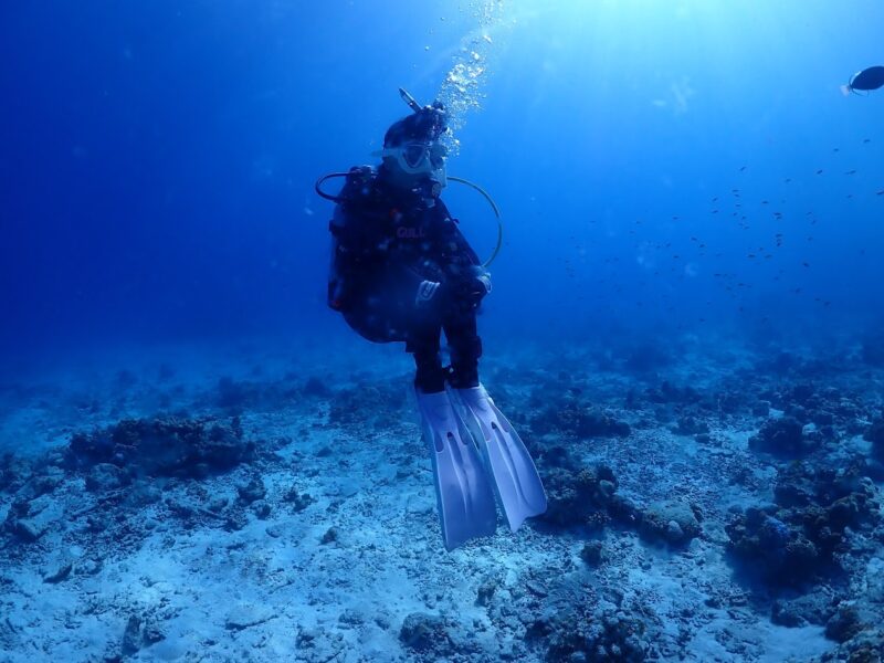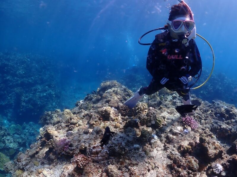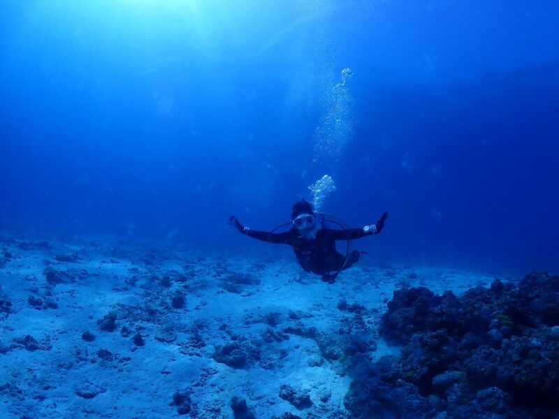 今日はゆりさんとマンツーマンでアドバンス講習で水納島、瀬底島、沖縄本島に行って来ました!!中性浮力に苦戦しながらも、深場での安全管理や色の変化、コンパスを使って四角形を行ってもらい、無事に初日が終わりました!!