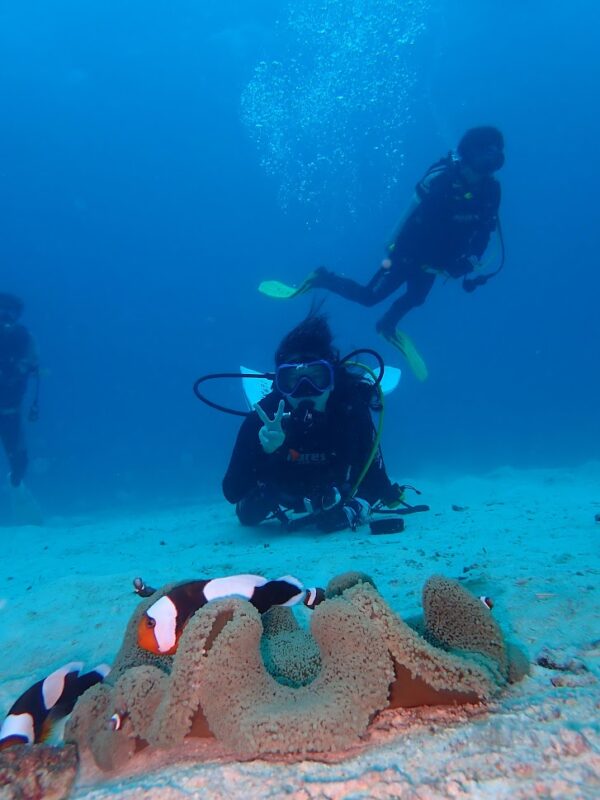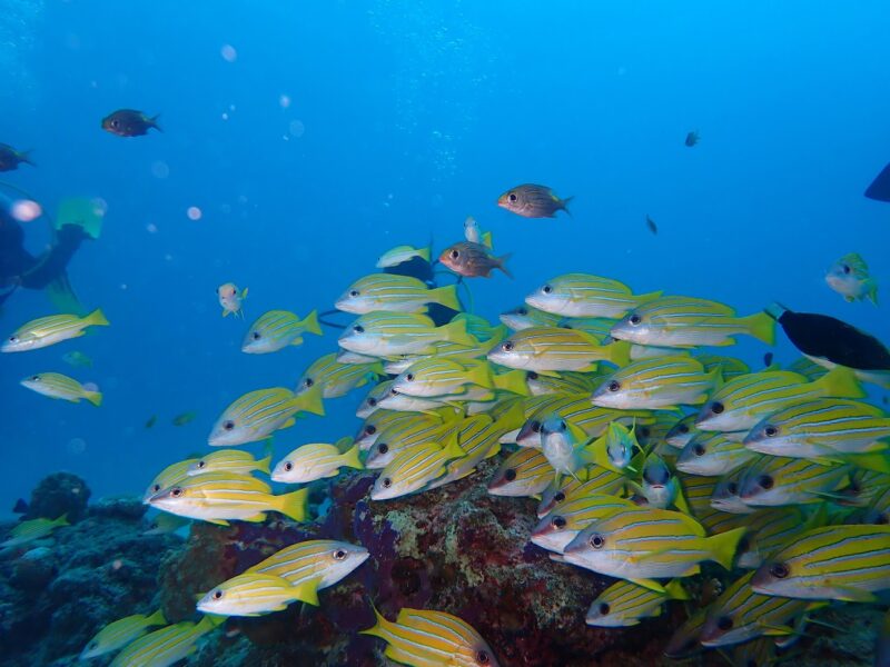 今日はミートさん、あきひこさん、ゆみこさん、ともさんと本島沿いでダイビングしてきました!先日の予報では台風でダイビングが中止になるかも???となっていましたが、少し外れてくれたので問題なくダイビングできました ♪それにしてもゴリチョのミジュンがすごいです!