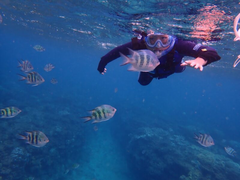 今日はアイちゃん、もみじさん、あおとくんとダイビング&スノーケリングに行ってきました!一本目は記念ダイブのノリカさんも一緒にダイビングしてきましたよ ♪ ゴリラチョップはミジュンの群れがすごかったですね〜 ♪