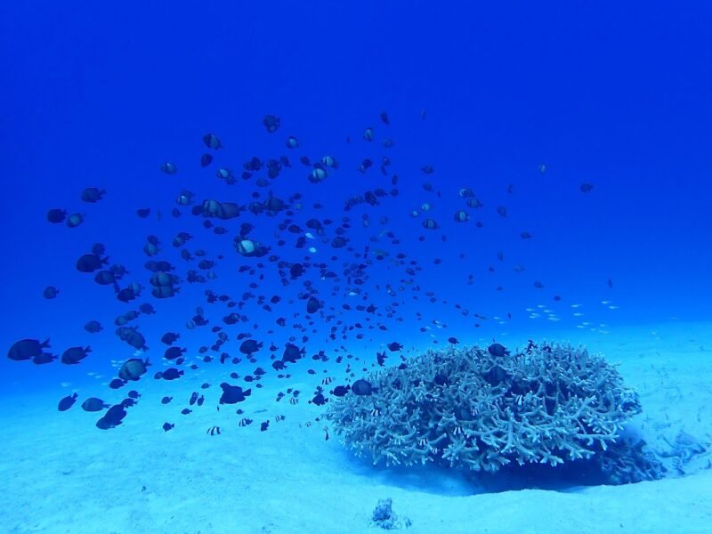 1本目:水納島(ジャイアントケーブル 南) 風速:北西5m 波:0.2m 透明度35m 水温:29℃ 流れ:下げ1