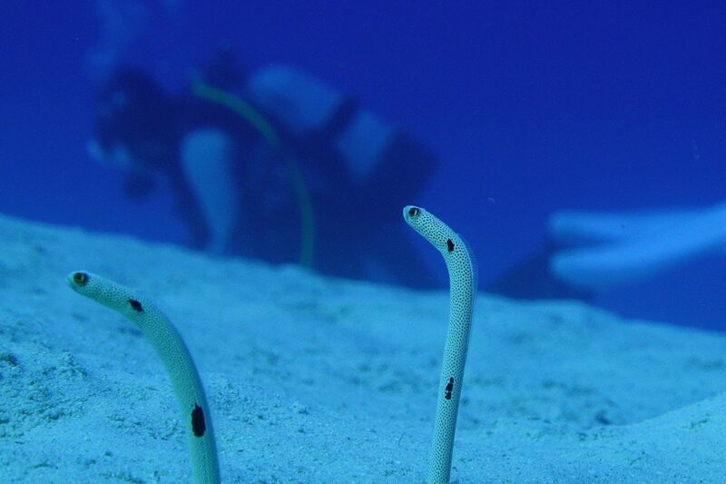 チンアナゴ越しにゆかりさんを撮っていたら・・・あ、気づかれた!笑