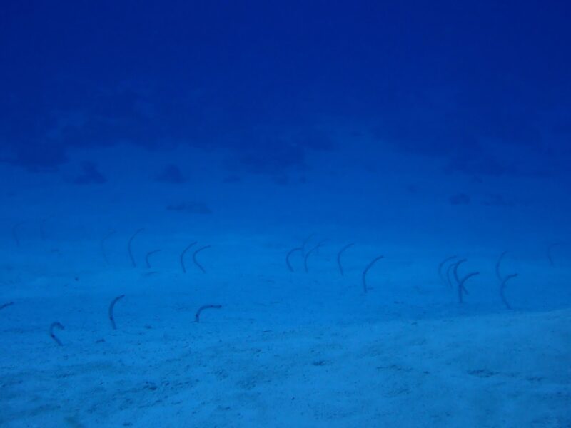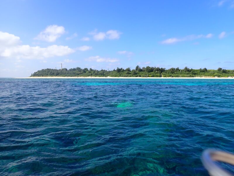 2本目:水納島(灯台下浅場) 風速:北西6m 波:0.5m うねり: 透明度25m 水温:28℃ 流れ:下げ1