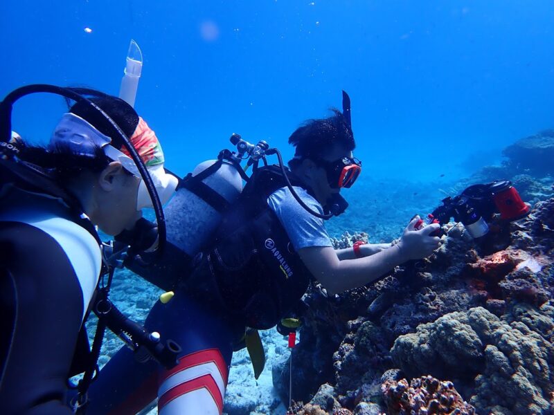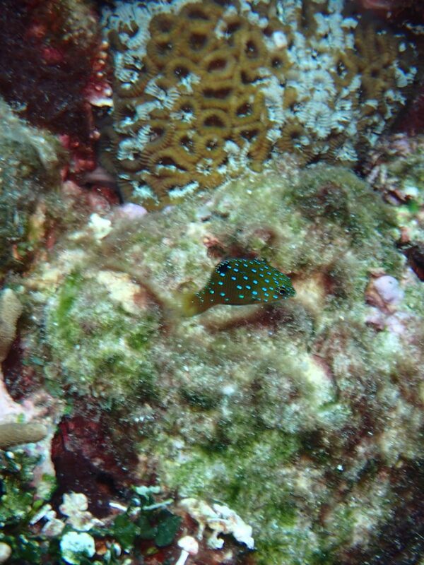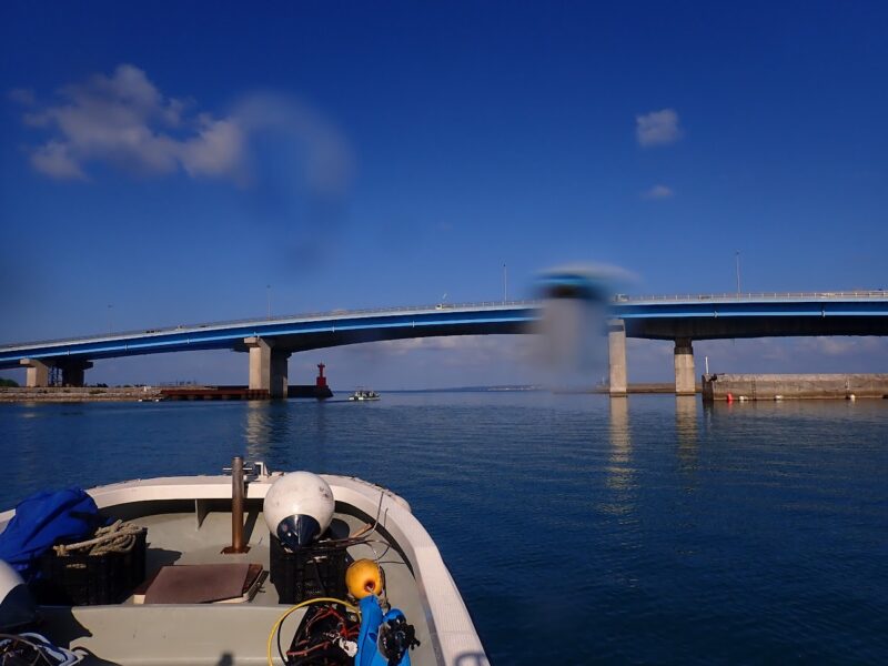 1本目:水納島(ポートサイド) 風速:北東4m 波:0.5m うねり: 透明度25m 水温:28℃ 流れ:上げ1