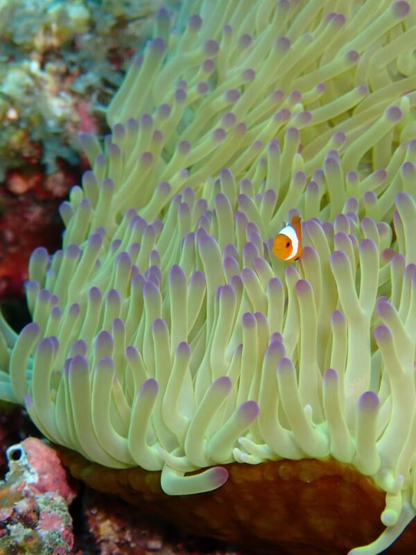 2本目:瀬底島(クマノミ山) 風速:北東4m 波:0.7m うねり: 透明度20m 水温:28℃ 流れ: