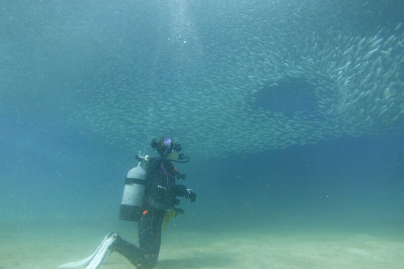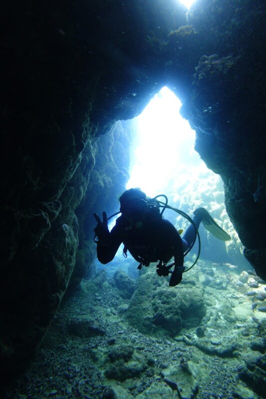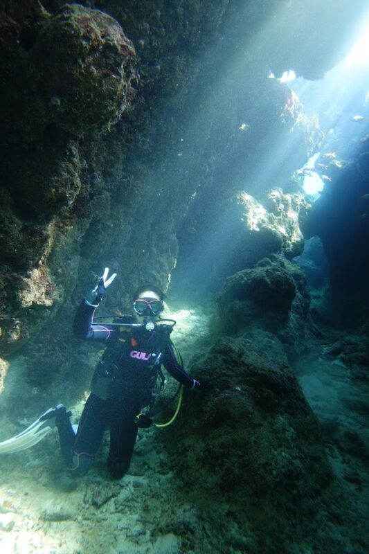 今日はチーちゃんとマンツーマンでダイビングしてきました!ゴリラチョップではミジュンの群れの中を気持ちよく泳いできました ♪ ラビリンスでは光が差し込む洞窟へ行ったりイセエビを見たり楽しかったですね ♪