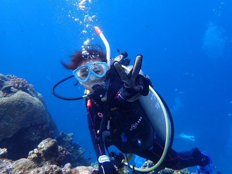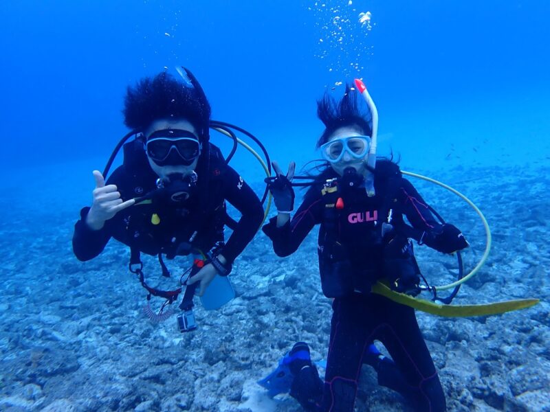 今日はカナちゃんと水納島&瀬底島で体験ダイビングをしてきました!最初はちょっとドキドキしたけど慣れてしまえば余裕でしたね 🎵2本目は洞窟の入り口まで行ってきましたよ ♪海の中でケイちゃんと一緒に記念撮影も出来たし楽しかったですね