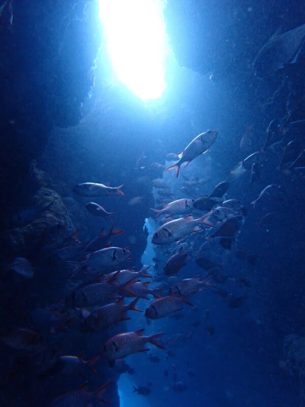 赤い魚はアカマツカサと言って暗いところが好きなんですよ
