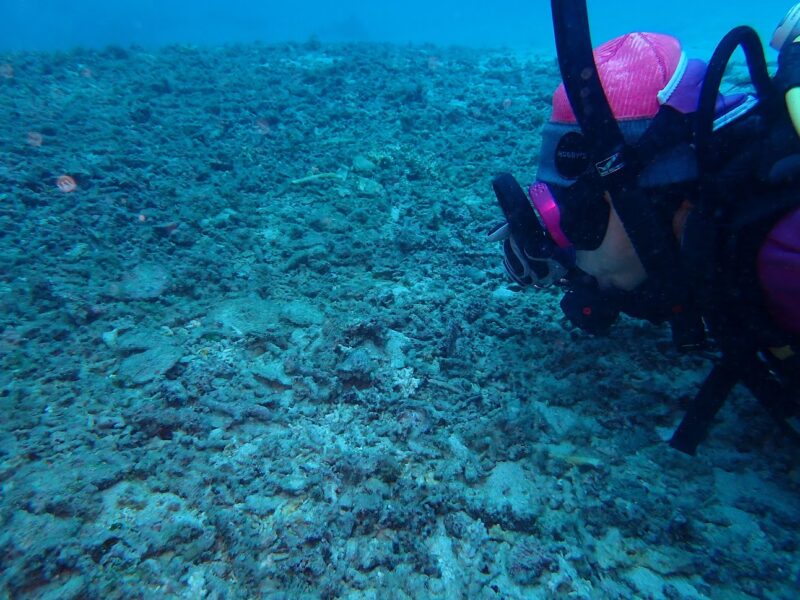 2本目:沖縄本島(ホワイトホテル前) 風速:東5m 波:0.5m うねり:西 透明度15m 水温:28℃ 流れ: