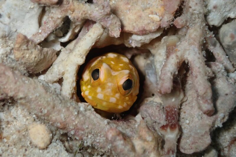 続いてあっちゃんが観察しているのは・・・黄色のジョーフィッシュくん
