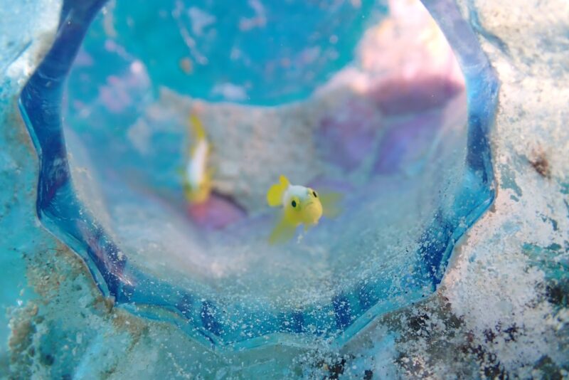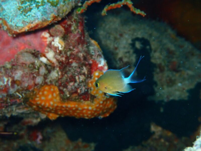 2本目:瀬底島(ラビリンス北新) 風速:北北東4m 波:0.5m うねり:あり 透明度20m 水温:28℃ 流れ: