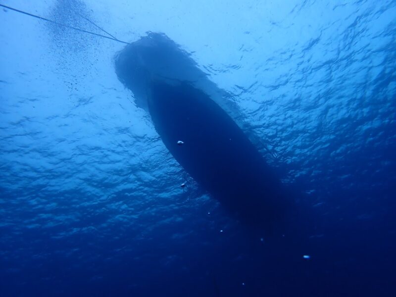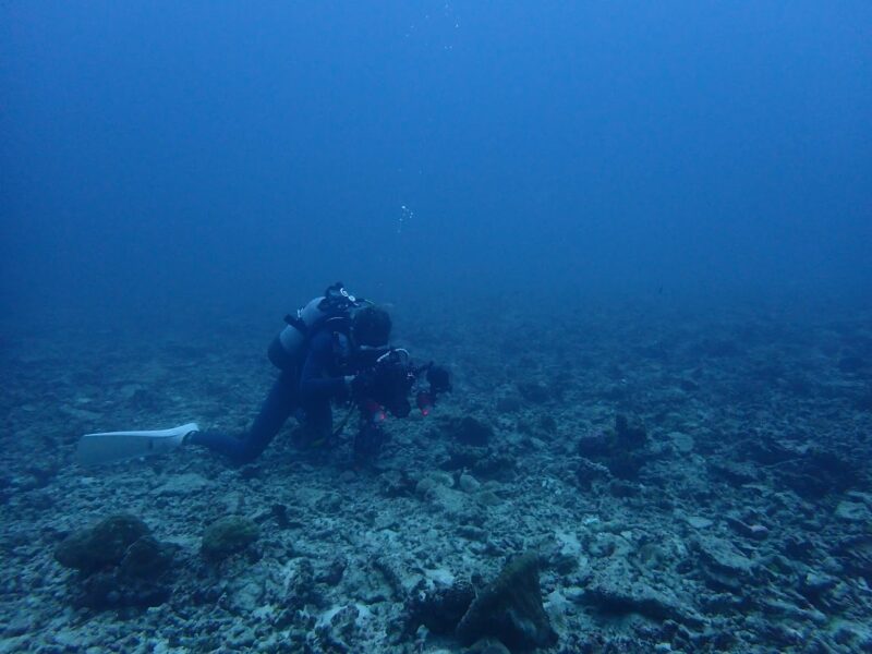 2本目:水納島(ジャイアントケーブル) 風速:南東2m 波:0.5m うねり:  透明度25m 水温:27℃ 流れ: