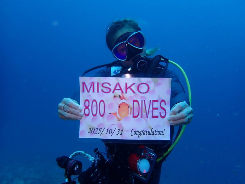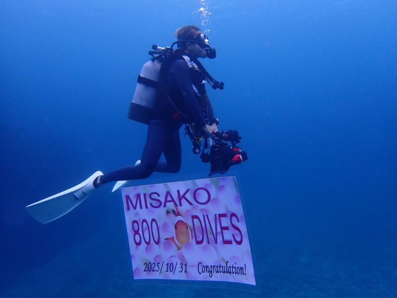今日もミサさんとマンツーマンで水納島&瀬底島に行ってきました!今日の3本目でミサさん800本の記念ダイブ!おめでとうございます ♪ 次は1000本目指してたくさんダイビングしてくださいね !そして今日は哲也のラストダイブでもありました!みなさん、本当にありがとうございました ♪