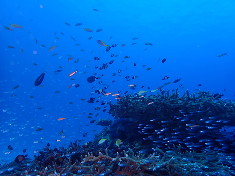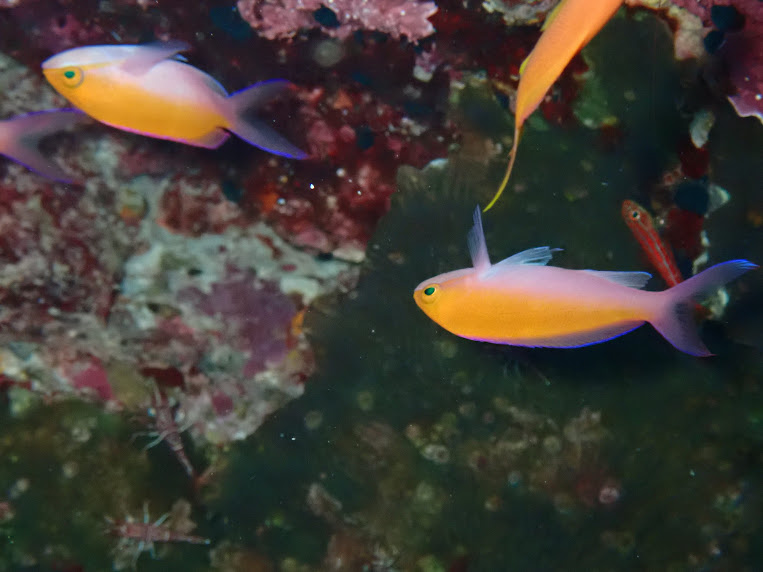 1本目:水納島(イエローフィッシュロック) 風速:東3m 波:0.2m 透明度25m 水温:26℃ 流れ:あげ1 IN:07:45 OUT:08:20 TIME:35分 MAX:24m 平均:17m
