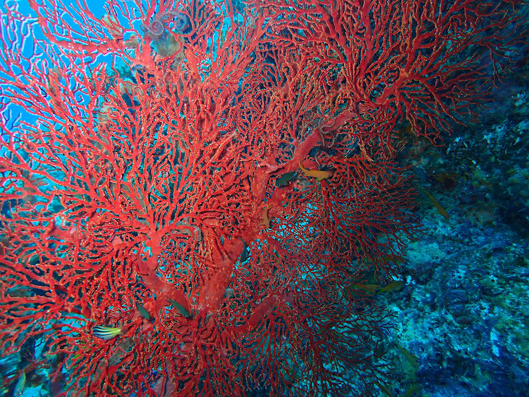 1本目:水納島(灯台下) 風速:北東6m 波:0.3m 透明度20m 水温:24℃ IN:9:20 OUT:10:00 TIME:40分 MAX:16m 平均:11m