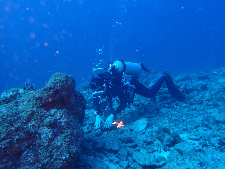 今日は昨日に引き続きさとみさん!!そして本日お久しぶりのみおちゃんと一緒に瀬底島と沖縄本島にいってきました!!久しぶりのみおちゃんはドライで緊張!!しかし二本目には慣れて上手に泳いでました!さとみさんはのんびり生物を探して楽しんで頂きました!!!