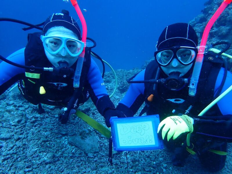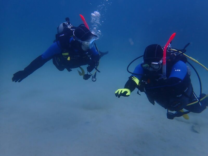 本日は、はやてぃーといーまのアドバンス講習でした!お二人は約1年ぶりのダイビング!本数を重ねるごとに上達してきて、いい感じでした♪本日は3ダイブで中性浮力、ディープ、ナビゲーションの練習!お二人ともお疲れ様でした♪