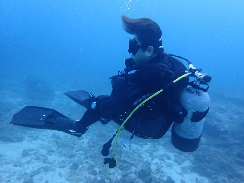 大学の講義でオープンウォーターのライセンスを取ってからダイビングに惹かれ、インストラクターを取得しました。