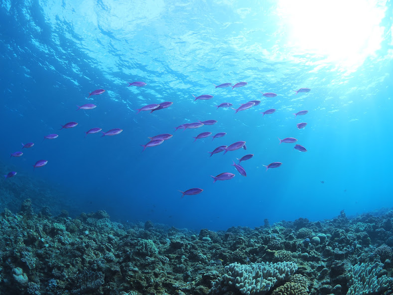 1本目:水納島(ポートサイド 北) 風速:北東4m 波:0.2m 透明度25m 水温:20℃