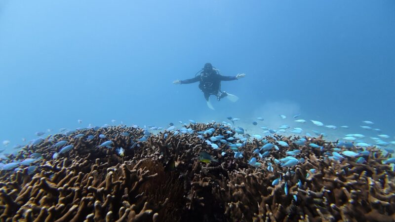 大学の講義でオープンウォーターのライセンスを取ってからダイビングに惹かれ、インストラクターを取得しました。
