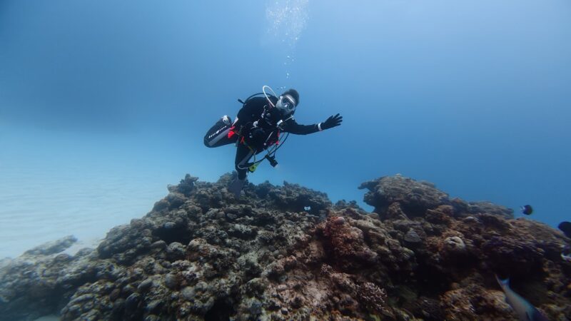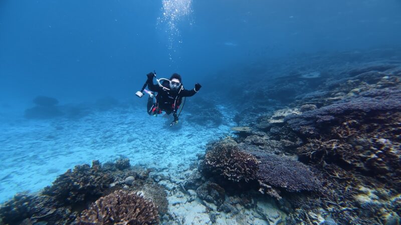 大学の講義でオープンウォーターのライセンスを取ってからダイビングに惹かれ、インストラクターを取得しました。