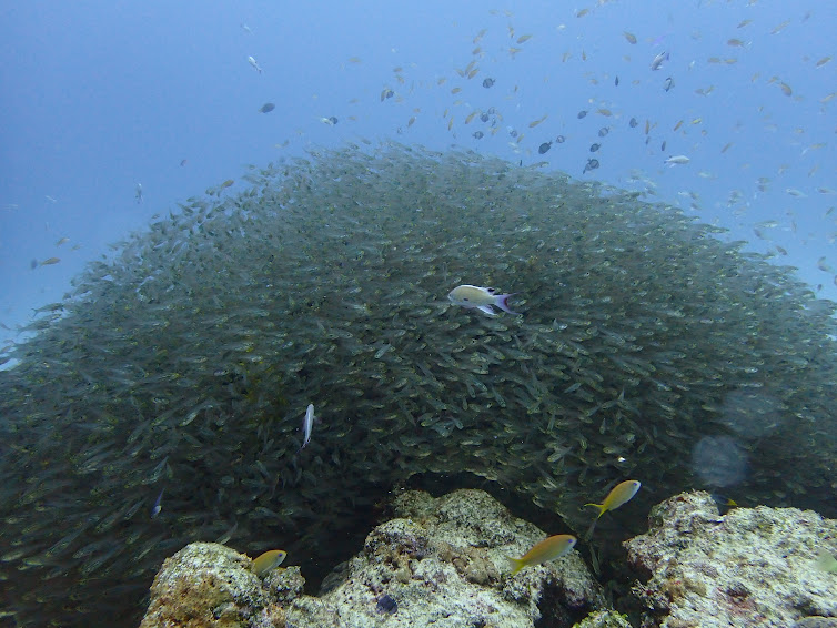 1本目:水納島(灯台下浅場) 風速:北東4.5m 波:0.1m 透明度20m うねり:あり 水温:20℃