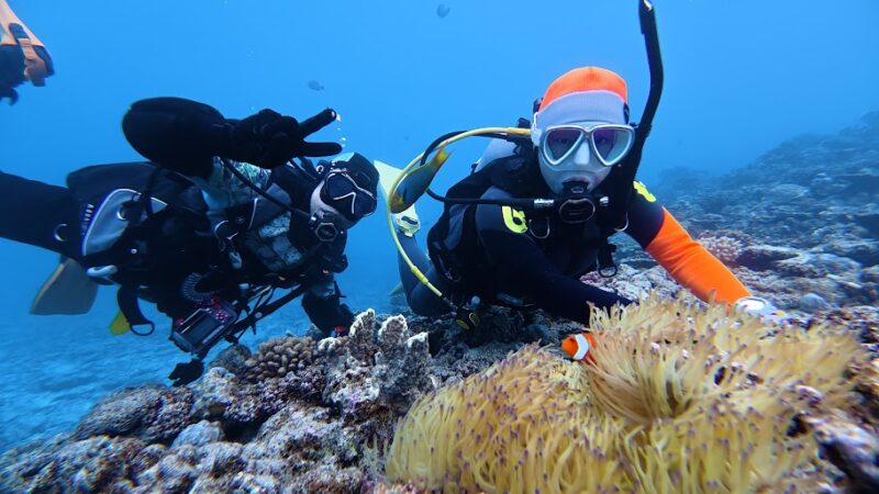 今日はかずさんとかみちゃんと一緒にのんびりと水納島、瀬底島に行ってきました!!思いのほか南風が強かったですがなんとか水納島へ!!そしてリフレッシュコースを行って安心してかみちゃんは楽しみ、かずさんは見守り隊兼フォトダイビングで楽しんで頂きました!!