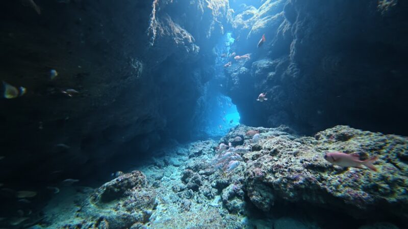 綺麗な青な洞窟!!恩納村にも負けてませんね!!!