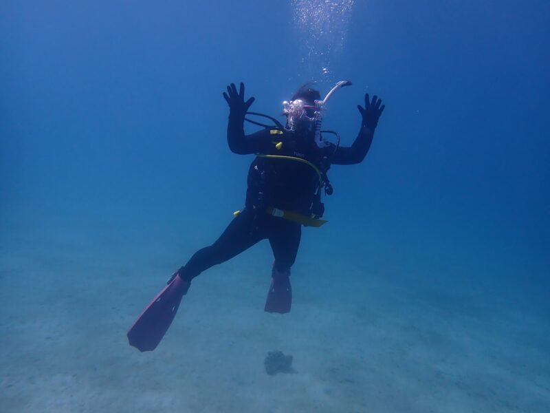 大学の講義でオープンウォーターのライセンスを取ってからダイビングに惹かれ、インストラクターを取得しました。