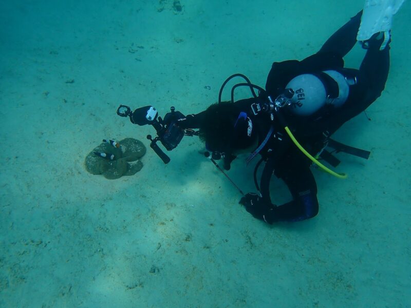 トウアカクマノミ撮影中の岩佐さん♪
