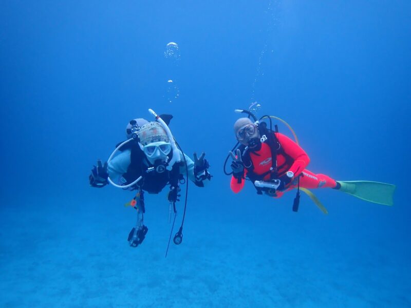 水中でもお互いをサポートし合ったり、生物を見つけたら教え合ったり、