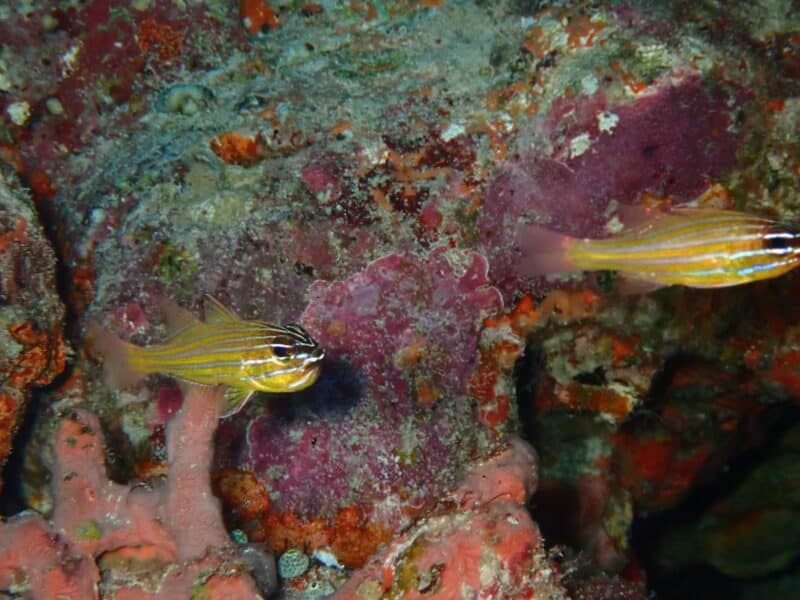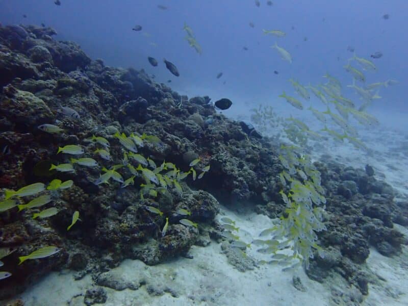 本日はじゅんさん、まゆさんと水納島&本当沿いでファンダイビングでした!今日は雨に加えて風が冷たく、冬のような気候でした🥶ですが、水中は穏やかでお魚やサンゴをのんびり眺めながらダイビングできました♪