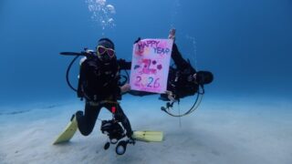 新年明けましておめでとうございます!2026年初潜りは山田さん、辻さんとファンダイビングでした♪本日は雨模様で北風強めでしたが、ゴリラチョップと山城豆腐店前の2ポイントで楽しむことができました!本日は小さい生き物メインで、お二人ともかっこい...
