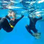 ブイのロープしたにはノコギリダイやアカヒメジが群れています。