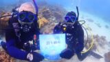 よしずみさんが潜降してくるカメを発見!