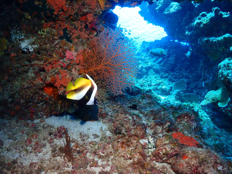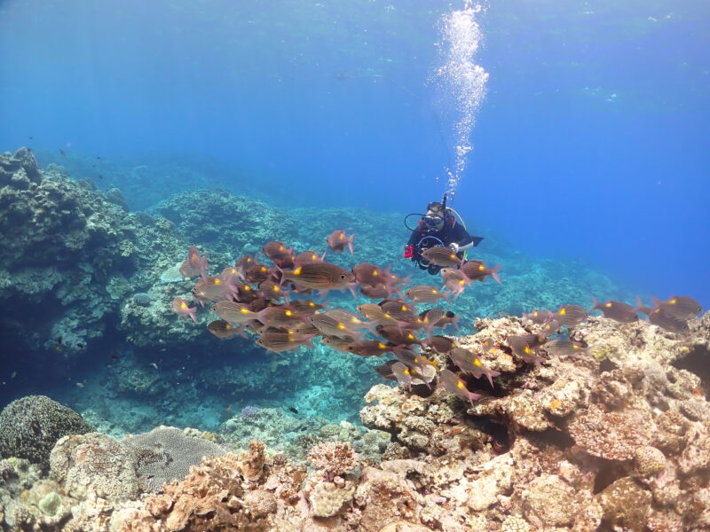 風速:東北東5m/s 波:2m→3m うねり:あり 透明度40m