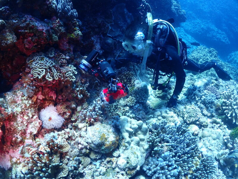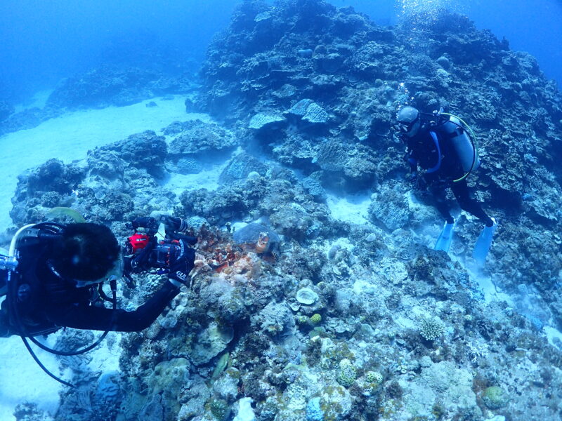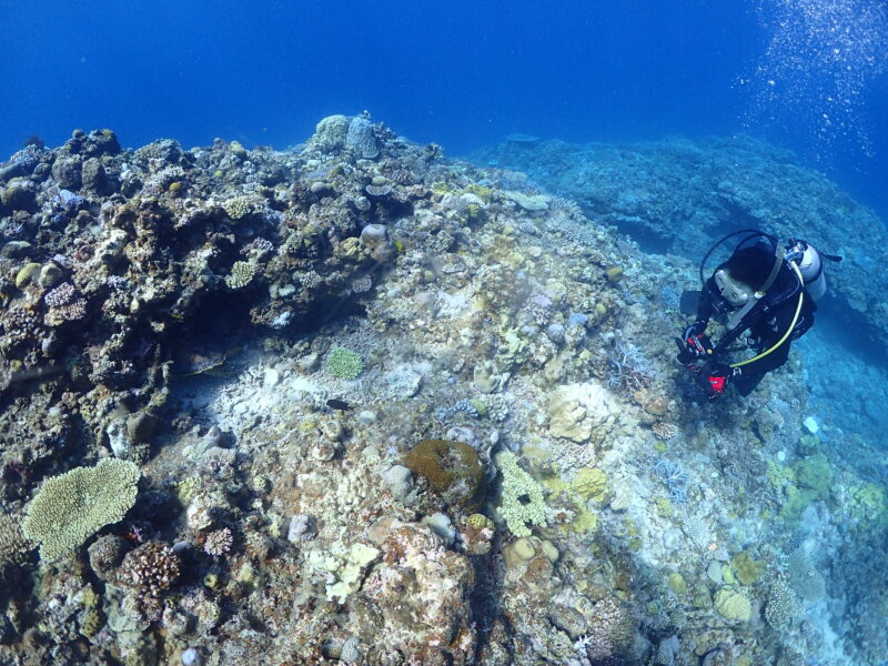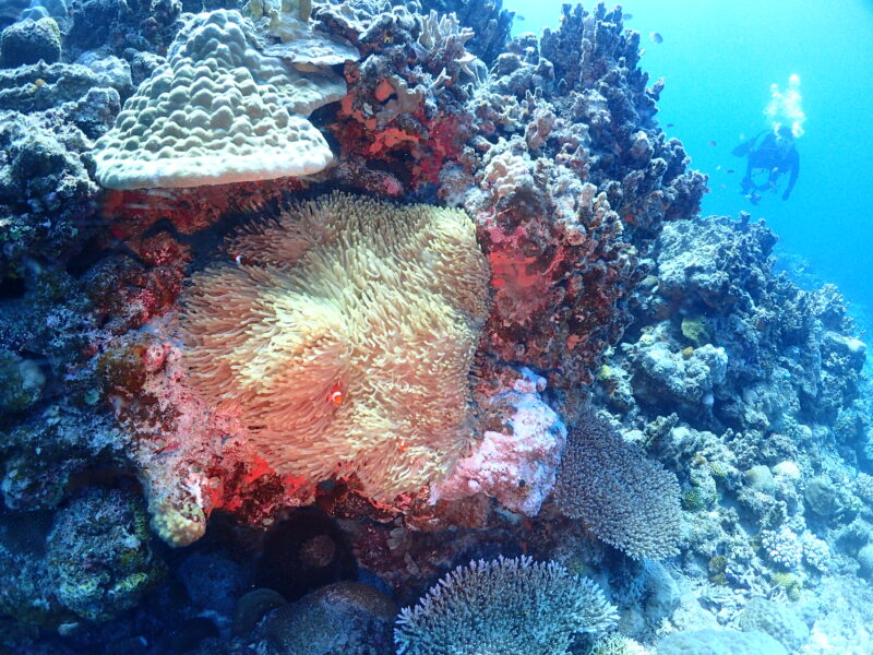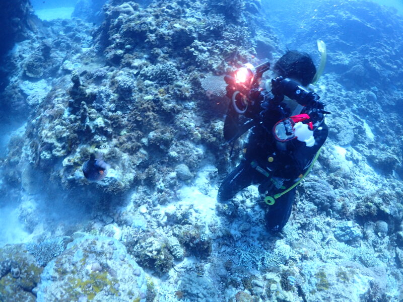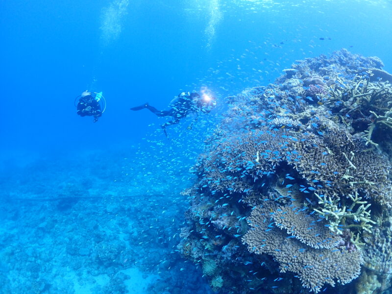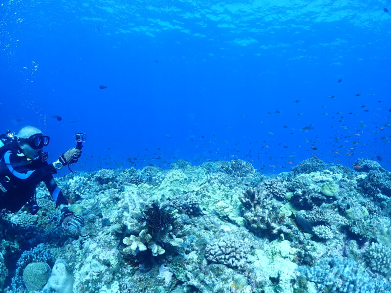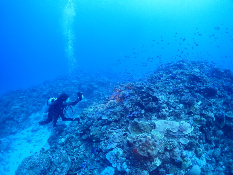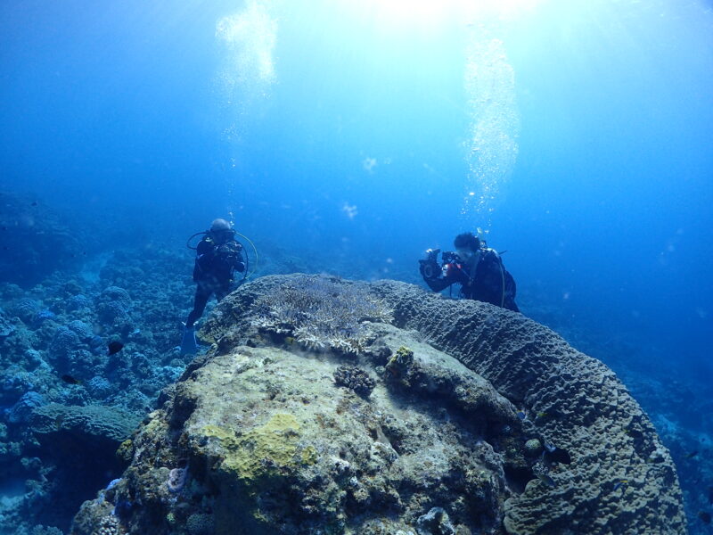 ハマサンゴのてっぺんにはデバスズメダイのお庭ができていました🐟