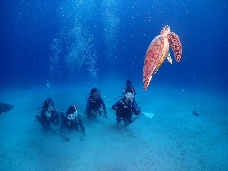 2本目では海藻爆食いのアオウミガメに遭遇!