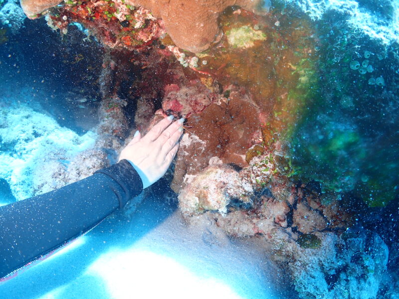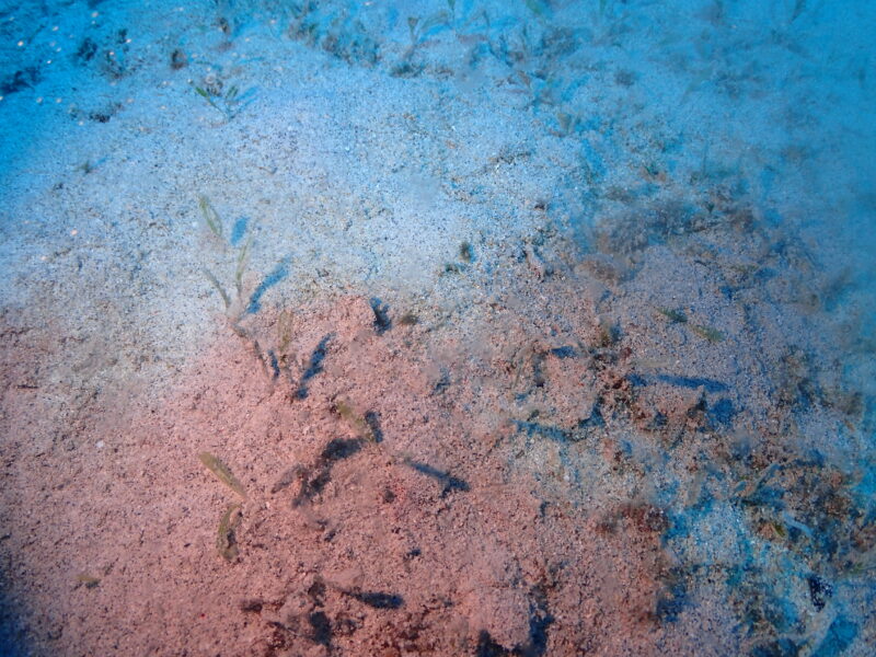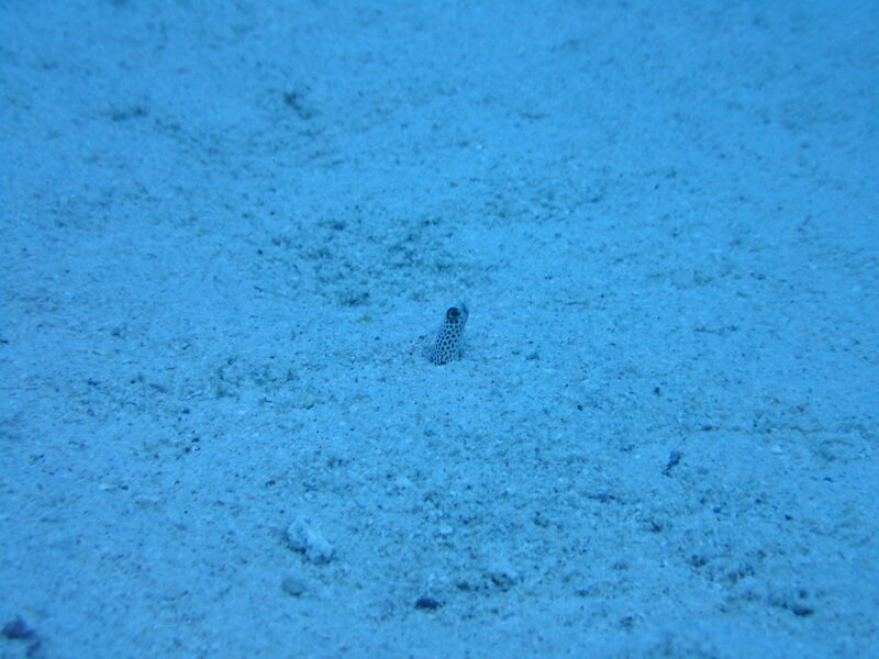 水底からにょきっとミナミホタテウミヘビ。オドリカクレエビがくっついていました🦐