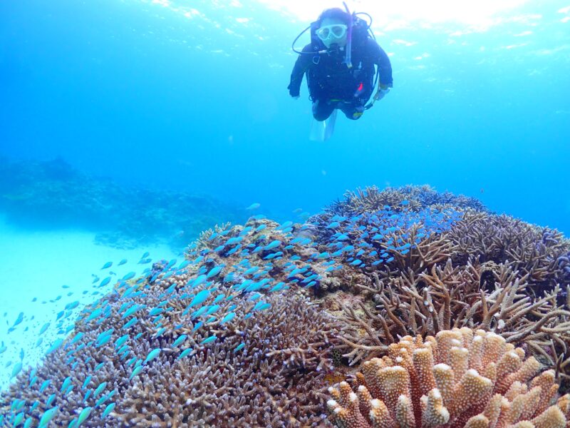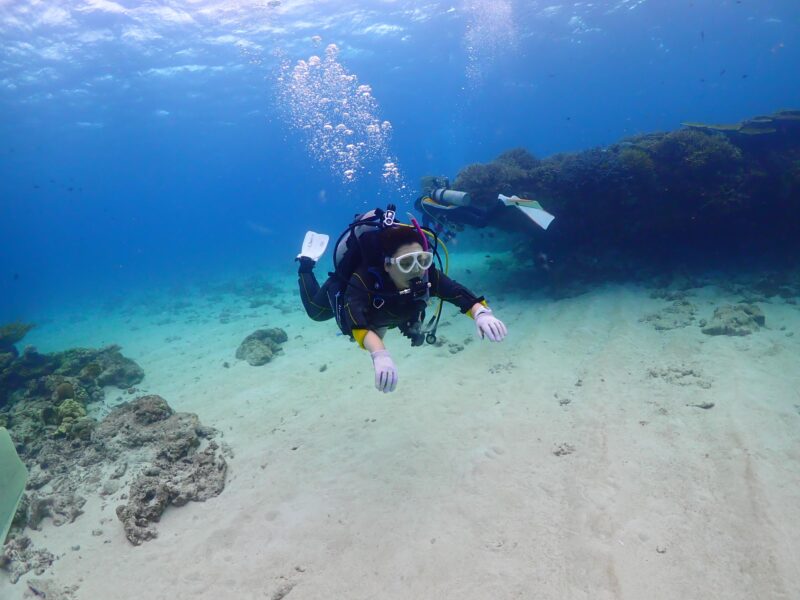 台風接近でチービシで潜ってきました!透明度も最高で綺麗な海でした!