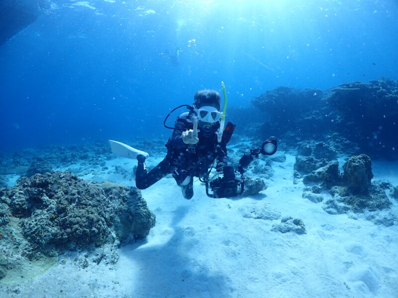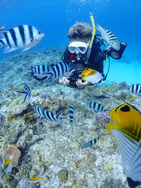 京都出身のオカン。リベルテで2003年にオープンウォーターを取得し、着々と沖縄移住を計画し2004年に実行、そしてインストラクターに。