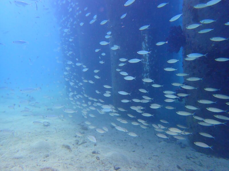 風速:北北西4m 波:2m うねり:なし 透明度15m 水温:27℃ 流れ:なし