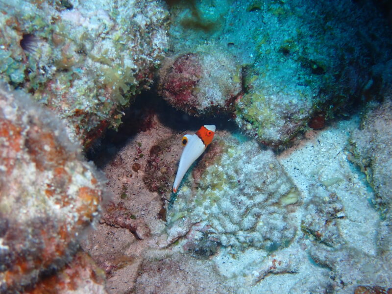 ミナミハコフグも、イロブダイの幼魚も、隠れすぎ😢