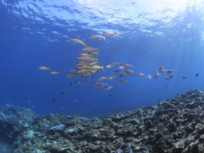 浅場のアカヒメジとノコギリダイの群れ🐟