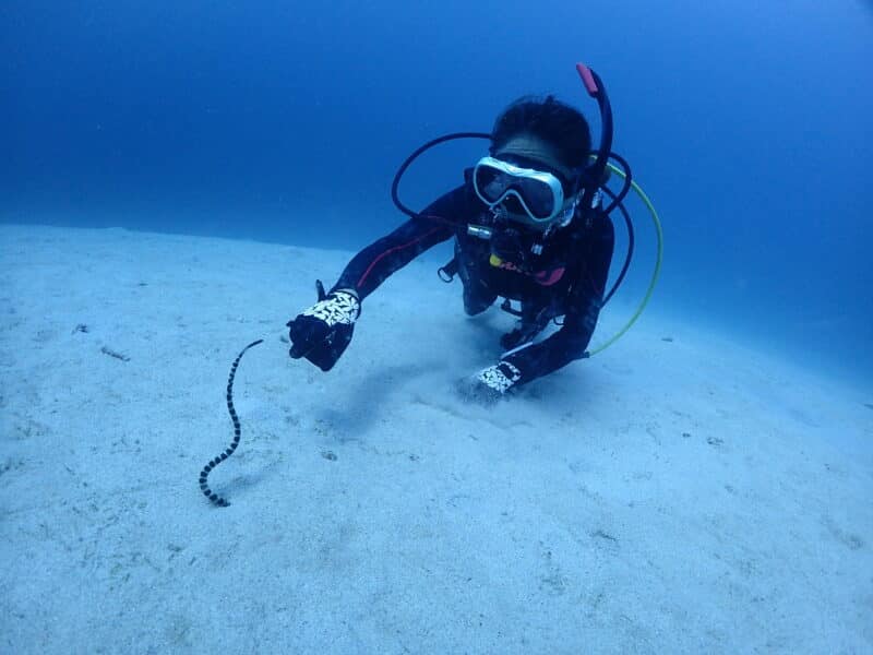 ウミヘビが砂に頭を突っ込んでいたので、勝手に救出してみました😅